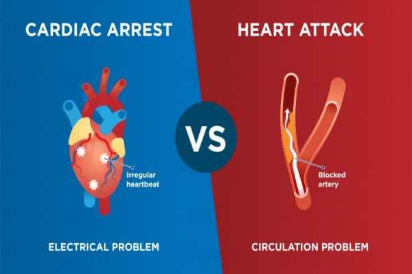Heart Attack एक Circulatory समस्या है, जबकि Cardiac Arrest एक Electrical समस्या है जो हृदय की अनियमित की धड़कन (Arrhythmia) से उत्पन्न होती है। अधिकांश दिल के दौरे से Cardiac Arrest नहीं होता है। हालांकि, जब Cardiac Arrest होता है, तो Heart Attack एक सामान्य कारण होता है।